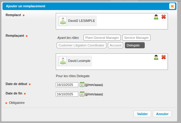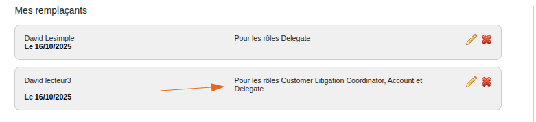 Exemple: sur le role delegate , j'ai potentiellement 2 personnes qui peuvent être remplaçant.