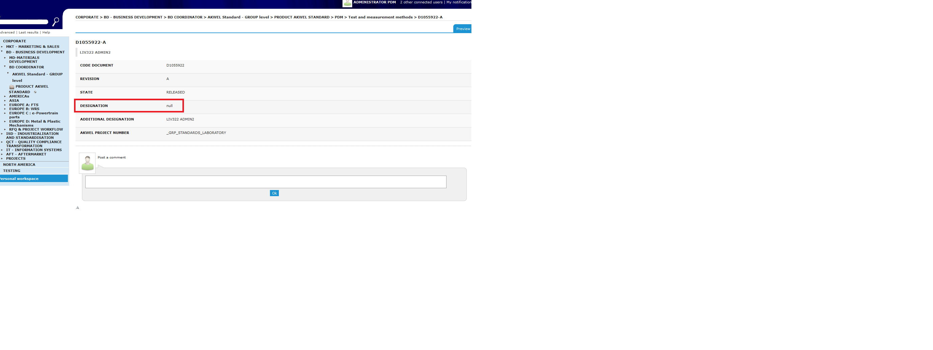 Il faut dans un premier temps vérifier les valeurs dans le champ "designation" du formulaire "pdm_documents".