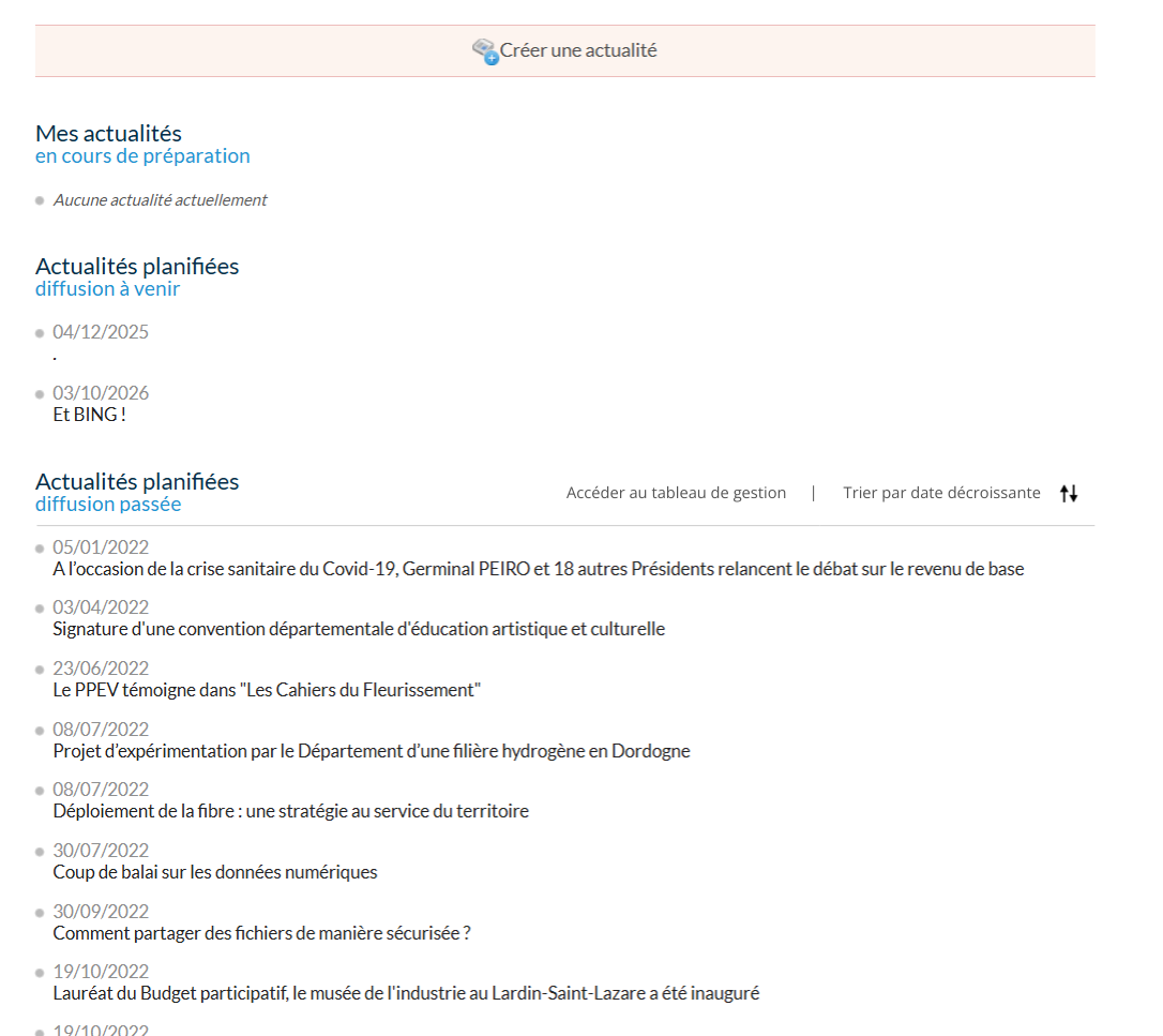 Et ce que soit spécifiquement pour les Actualités planifiées diffusions passées. Mais aussi pour toutes les actualités (en générale).