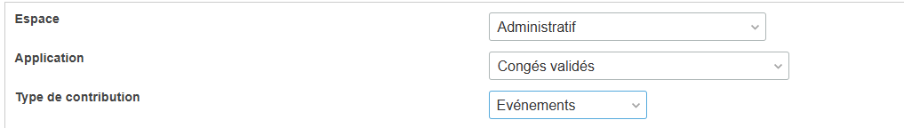 Hors dans la recherche avancée, les applications de type agenda peuvent être sélectionnées. Et le type de contribution "Evénement" est toujours proposé également.